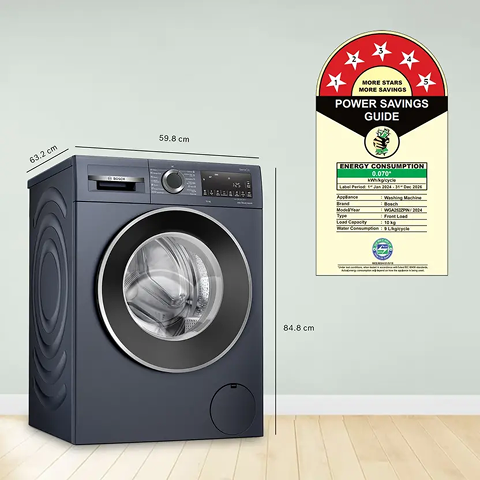 The Bosch Fully Automatic Front Load Washing Machine offers advanced care for your wardrobe with dedicated wash programs for various fabrics. Its Steam Care feature eliminates germs and smoothens wrinkles, while Soft Care Paddles and a spacious 60L drum ensure gentle cleaning. TUV tested for quality, it tackles tough stains and protects fabric integrity. The AllergyPlus program provides a hygienic wash, ideal for sensitive skin. Crafted with precision German engineering, this machine guarantees reliable performance and durability, transforming laundry into a seamless, efficient process while ensuring clothes stay in top condition wash after wash.